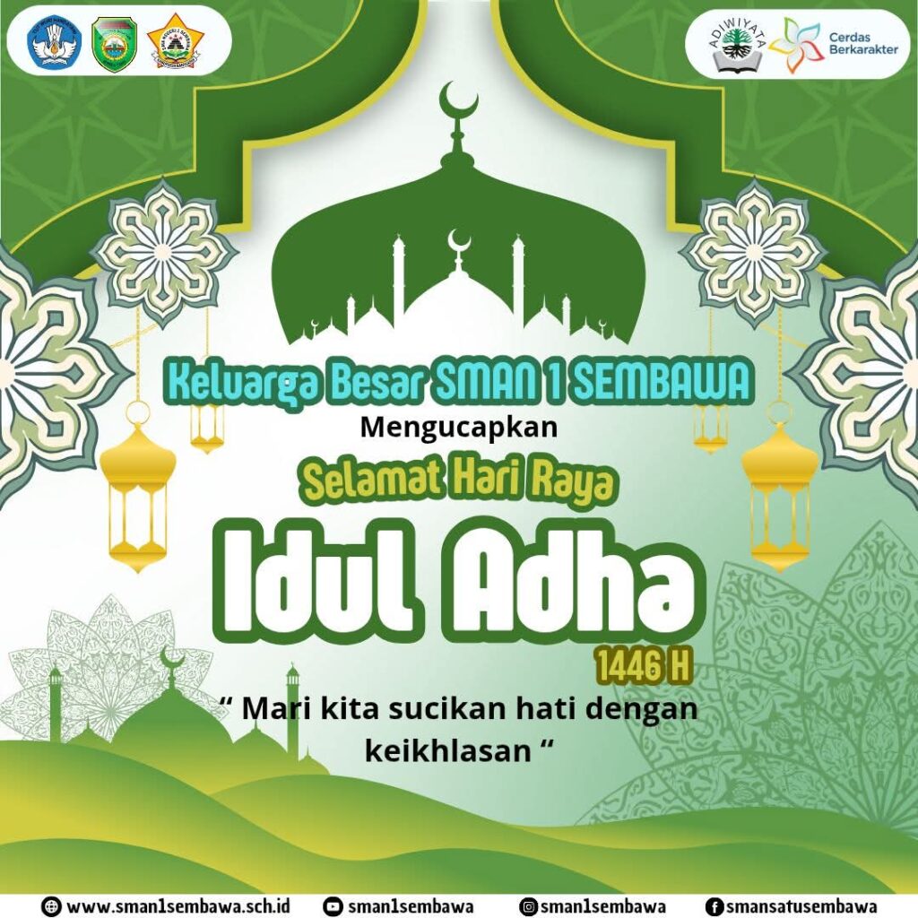 Mari jadikan momen suci ini untuk meneladani ketulusan dan pengorbanan, serta memperkuat tali silaturahmi. Taqabbalallahu minna wa minkum. ✨ #IdulAdha #SekolahInspiratif #KurbanBerkah #CerdasBerkarakter #SMAN1Sembawa